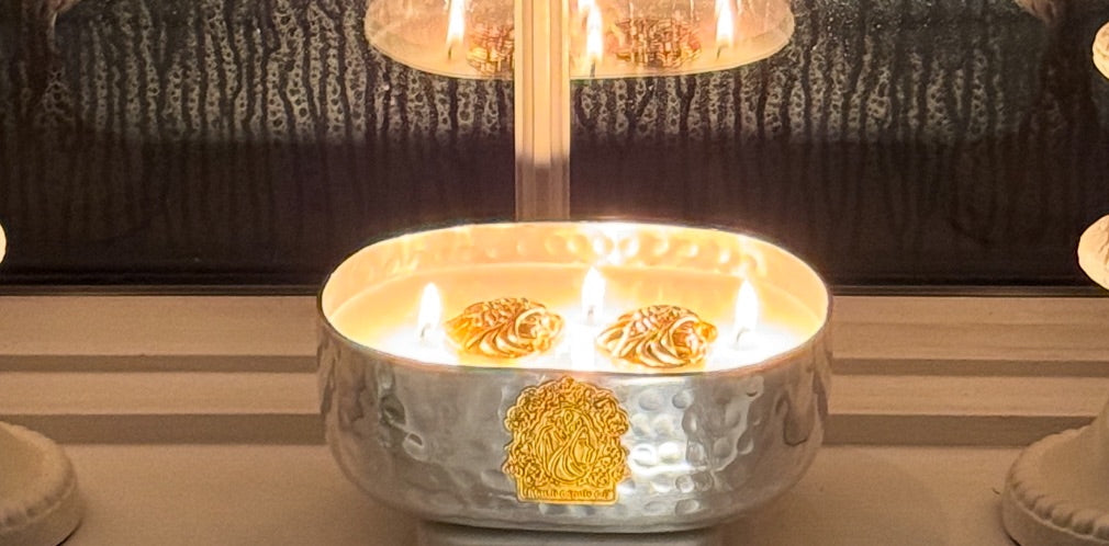 The Silver Collection brings artisanal texture and modern elegance to any space with hand‑hammered jars that catch light and command attention. Available in two sizes and four rich metal‑inspired finishes, each vessel pairs with a wide selection of fragrances so you can tailor the mood for every room and occasion. Carefully hand‑poured from high‑quality, sustainably sourced wax and fitted with six cotton wicks for a clean, even burn, these candles deliver long‑lasting performance and a generous scent throw. When the wax is finished, the unique hammered jar becomes a decorative keepsake—perfect for styling on shelves, mantels, or bedside tables. Polished yet approachable, the Silver Collection in a luminous silver finish is ideal for gifting, statement styling, or layering with other pieces to create a striking, cohesive