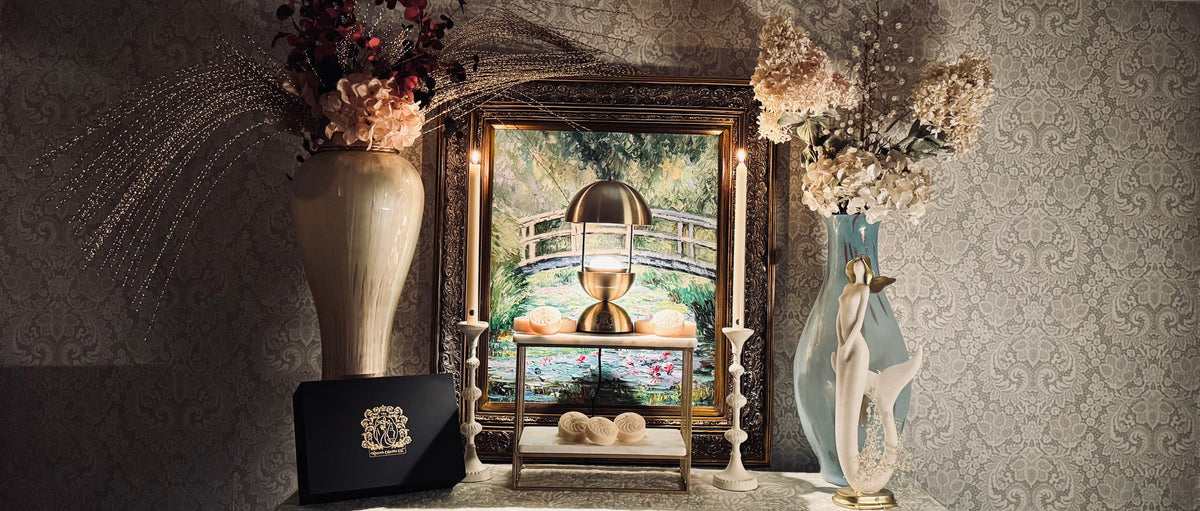 A statement piece with purpose, The Bebo Lamp seamlessly blends elegant design with aromatic function. Crafted with a brushed gold finish and minimalist silhouette, it features a dome-shaped top, suspended over a central heating area, creating a luxurious ambiance while gently warming your favorite wax melts. At the heart of the lamp is a sleek black melting dish, perfectly positioned to hold your Khush candle wax melt. Once the lamp is powered on, it gradually warms the wax—no flame needed— releasing layers of fragrance into your space with refined subtlety.