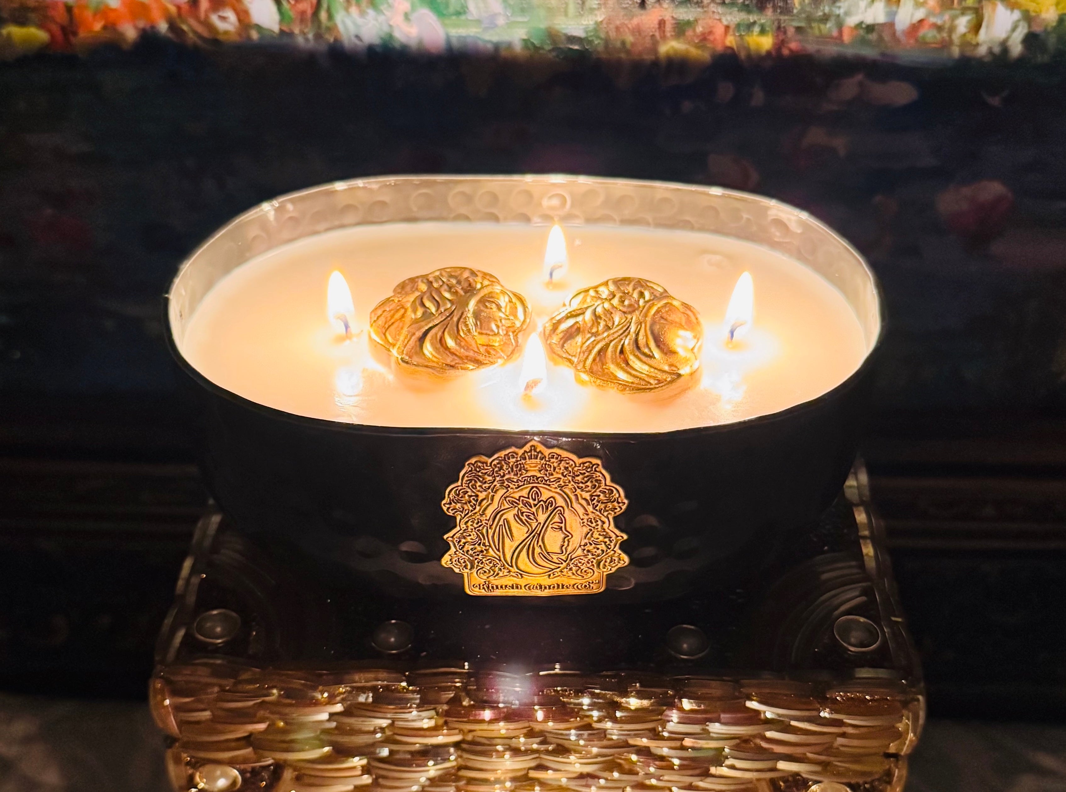 Black Finish Collection brings artisanal texture and modern elegance to any space with hand‑hammered jars that catch light and command attention. Available in two sizes and four rich metal‑inspired finishes, each vessel pairs with a wide selection of fragrances so you can tailor the mood for every room and occasion. Carefully hand‑poured from high‑quality, sustainably sourced wax and fitted with six cotton wicks for a clean, even burn, these candles deliver long‑lasting performance and a generous scent throw. When the wax is finished, the unique hammered jar becomes a decorative keepsake—perfect for styling on shelves, mantels, or bedside tables. Polished yet approachable, the Black Finish Collection in Black Finish is ideal for gifting, statement styling, or layering with other pieces to create a striking, cohesive vignette.